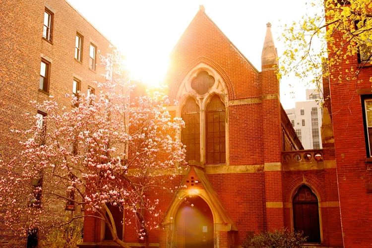 A notable Willow Place feature since 1876 was this lovely structure called the Willow Place Chapel. It was built by First Unitarian Church on Pierrepont Street to house the so-called “settlement school” the church began in 1865. The church bought the lot running through to Columbia Place from New York City’s Board of Education. The chapel was designed by an architect who belonged to the church, Holland C. Anthony of the Russell Sturgis architectural firm, and cost $20,000. Alfred T. White also belonged to the church and taught in the school. Once in its own building the school that White now headed became a leader in preschool education. He also started settlement clubs for neighborhood children. In 1906 these activities could expand with the addition that came to be called Columbia House with its own entrance on Columbia Place. The addition also cost $20,000 and was paid for entirely by White and his sisters. The chapel was a very busy place also having an interdenominational ministry focused on immigrant families with a Sunday school and worship services on Sunday evenings.